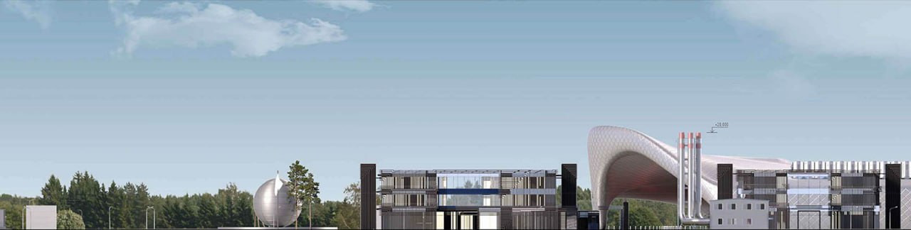 Судя по фотографиям, для проекта характерны волнообразные линии, скруглённые углы, а также большие площади металла и стекла.