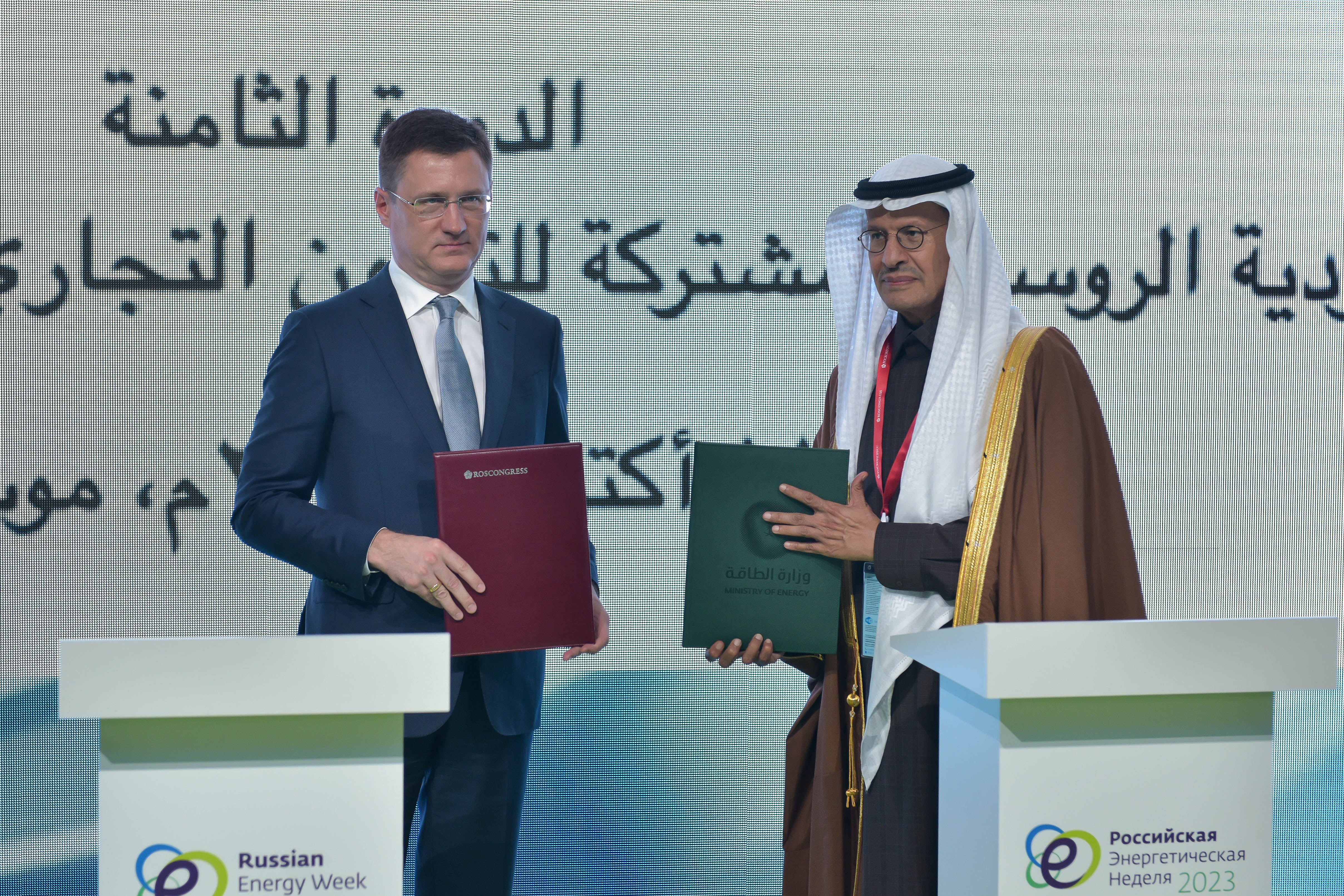 Заместитель председателя правительства РФ Александр Новак и Его Королевское Высочество, министр энергетики Саудовской Аравии Абдельазиз бен Сальман в рамках первого дня Российской энергетической недели в качестве сопредседателей провели заседание Совместной межправительственной Российско-Саудовской комиссии (МПК). Следующее заседание МПК состоится в 2024 году.