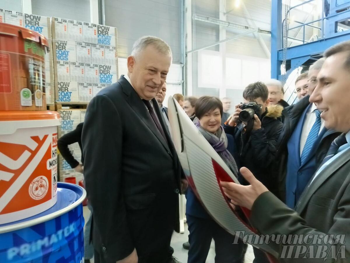 Глава региона, а также руководители Гатчины и района Виталий Филоненко и Людмила Нещадим оценили оснащение предприятия.