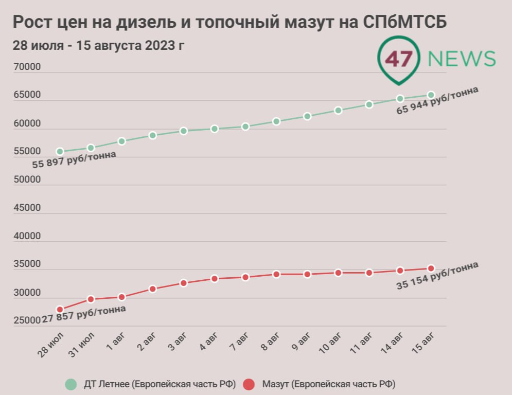 Стоимость мазута по данному территориальному индексу растёт на СПбМТСБ с конца июня, а дизеля — с 28 июля. Таким образом стоимость дизеля выросла на 0,97% и обновила исторический максимум десятый торговый день подряд.