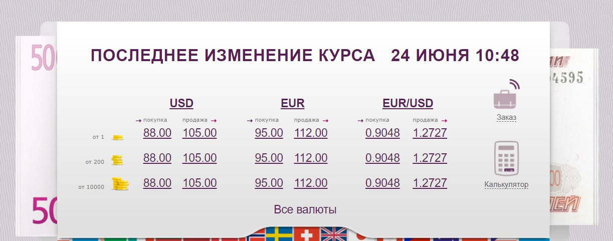 Судя по предложениям обменников, в первой половине дня субботы, 24 июня, курс рубля серьёзно изменился. Если накануне вечером обменять "живые" доллары на рубли можно было ща 83, рублей, сегодня уже по 88 рубля, евро был по 91 рубль, сегодня – по 95.
