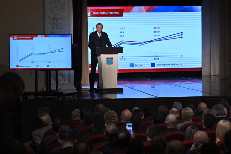 Глава региона начал доклад с цитаты президента России Владимира Путина во время послания Федеральному Собранию: «В прошлом году экономика России росла темпами выше мировой. Огромную роль в этом сыграл фундаментальный запас прочности, который был сделан за последние десятилетия». Александр Дрозденко подчеркнул: в этом - и вклад Ленинградской области.