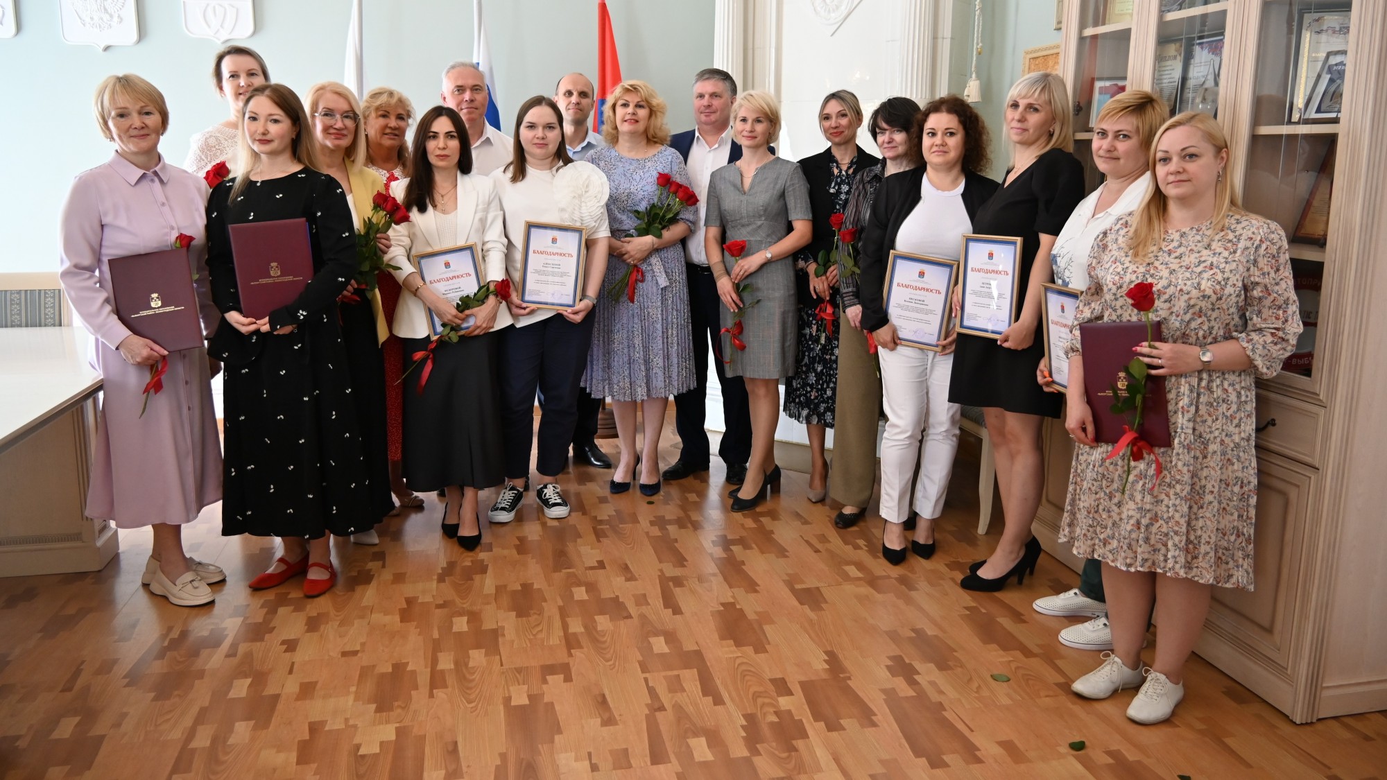 Дмитрий Никулин и Михаил Макаров вручили почетные грамоты и благодарственные письма отличившимся соцработникам.