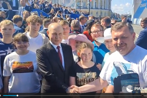 Как сообщает ТАСС , 30 июля в Петербурге семейная пара из Магадана и их семеро детей стали личными гостями главы государства на Дне ВМФ. Их разместили на Сенатской площади на гостевых трибунах сразу по приезду ночным поездом из Москвы. По окончанию праздника Путин подошел к семейству, пожал руку отцу и согласился на совместное фото.
