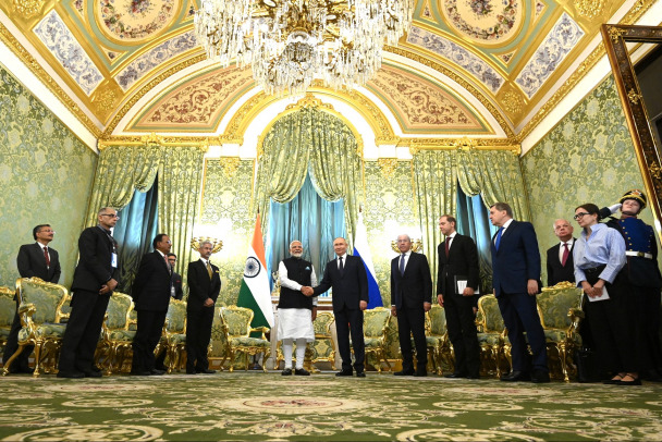 Состоялись официальные переговоры российского президента Путина с премьер-министром Индии Моди. Обсуждались экономическое сотрудничество между странами до 2030 года, повышение товарооборота до 100 миллиардов долларов и конфликт с Украиной. А перед переговорами Моди наградили орденом Святого апостола Андрея Первозванного.