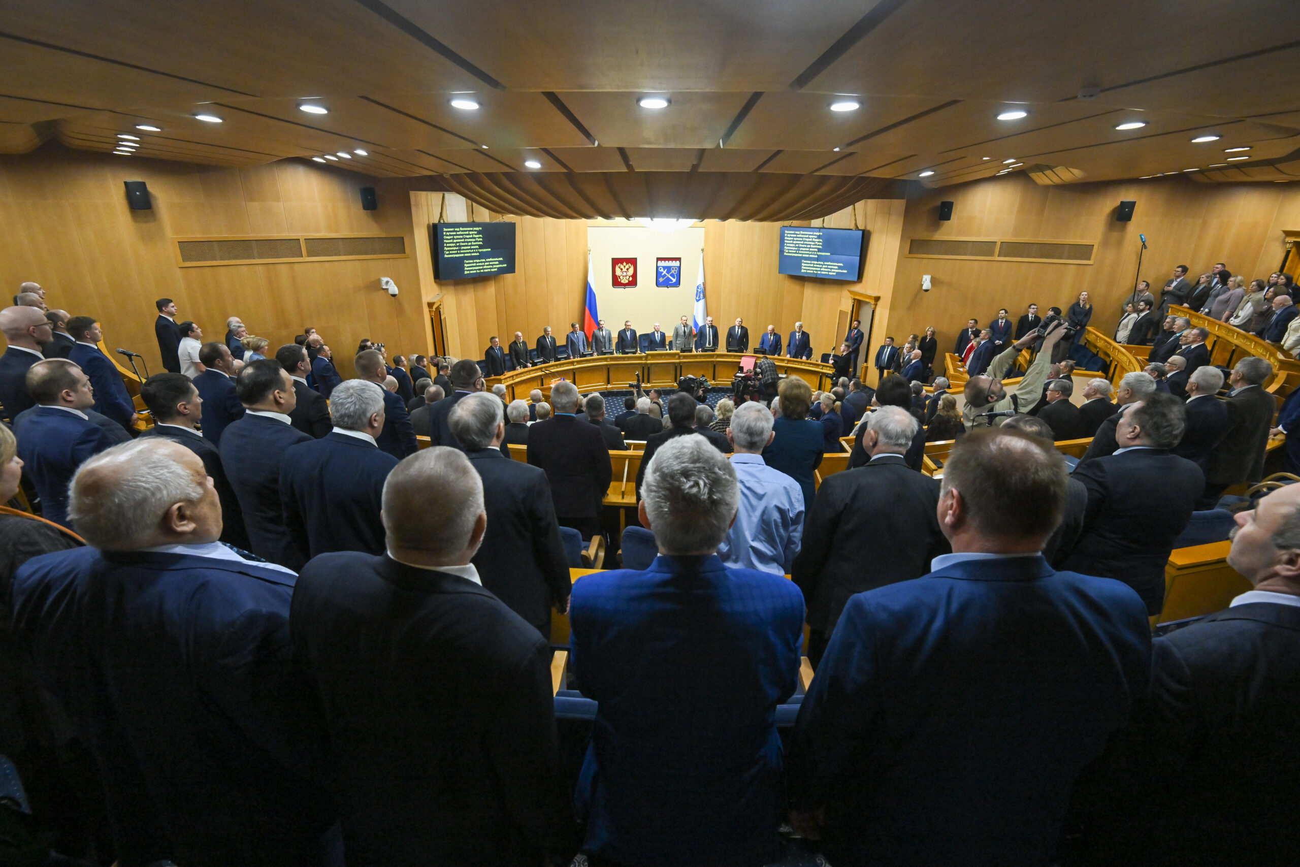 Перед торжественным заседанием в стенах Заксобрания прошла пресс-конференция со спикерами предыдущих созывов – Василием Ивановым, Иваном Хабаровым, Александром Худилайненом, действующим председателем Сергеем Бебениным и депутатом, а также экс-губернатором Ленинградской области Вадимом Густовым.
