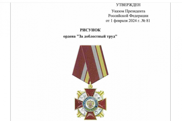 "Учредить орден "За доблестный труд", - отмечается в указе, опубликованном на официальном портале правовой информации 1 февраля.