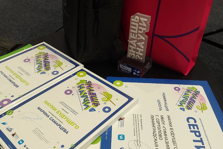 На конкурс Руслан представил работу в направлении «Науки будущего», которая была высока оценена членами жюри. Он вошел в число 17 победителей и получил путевку в ВДЦ «Смена», а гимназия г.Сертолово - учебные пособия по разным дисциплинам.