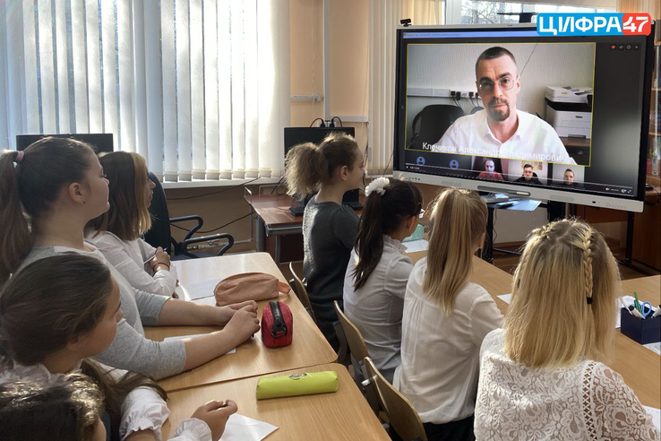 К трансляции урока подключились школы из 8 районов Ленинградской области: Бокситогорского, Кировского, Волосовского, Всеволожского, Гатчинского, Кингисеппского, Сланцевского и Лодейнопольского.