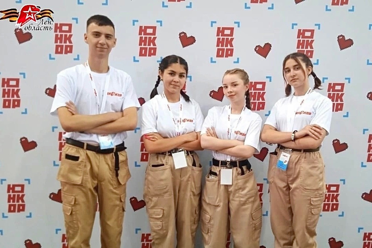 Ленинградскую область представляли 4 юнармейца: Карина Григорьева и Камила Рузиева из Всеволожского района, Ульяна Глазунова из Гатчинского района и Никита Поляков из Тихвинского района. Возглавил делегацию педагог Центра детского творчества Гатчинского района - Александр Орлов.