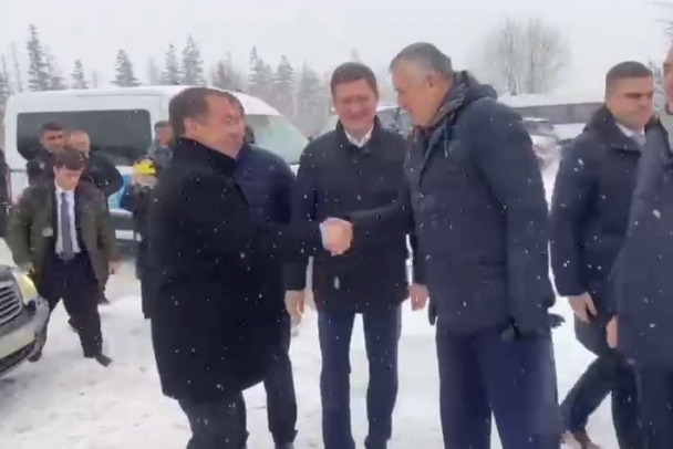 Видео: Экс-президента Медведева завалило снегом в Большом Верево. Он приехал на чай по случаю газификации