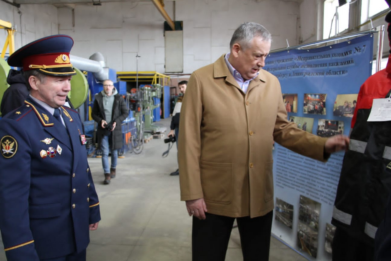 В поездке в колонию губернатора Ленобласти сопровождали руководители профильных комитетов и глава администрации Тосненского района Андрей Клементьев. Промышленный сектор гостям показал начальник УФСИН по Петербургу и Ленобласти, генерал-майор Игорь Потапенко. Он перечислил особенности производства: многопрофильность в рамках одного учреждения, возможность быстрого перепрофилирования на выпуск конкурентоспособной продукции. В цехах участникам экскурсии показали различные образцы мебели для отдыха, кованых и металлических изделий, сувенирных шахмат и нард, актуальных в этом сезоне мангалов, шампуров, коптилен. Продемонстрировали комплекты спецодежды и формы, которую шьют заключенные. Из колонии чиновники правительства Ленобласти уехали с каталогами и прайс-листами.