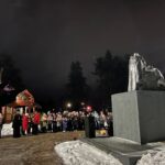 Затем все собравшиеся возложили цветы и зажгли свечи у памятника.