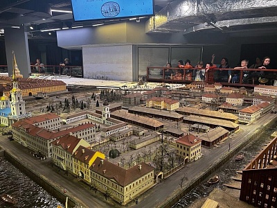 Второй музей, который удалось посетить подпорожским ребятам в этот день, назывался «Петровская Акватория». Экспозиция музея представляла собой исторический макет наиболее значимых достопримечательностей Петербурга и пригородов. Главной особенностью были двигающиеся миниатюры, которые показывали, как создавался Санкт-Петербург, как протекала жизнь в городе и его окрестностях. Особые технологии позволяли менять освещение, чередуя день и ночь, кареты двигались, корабли плавали по настоящей воде и стреляли из пушек. При нажатии специальных кнопок некоторые фигуры начинали шевелиться, выполняя заданную программу.