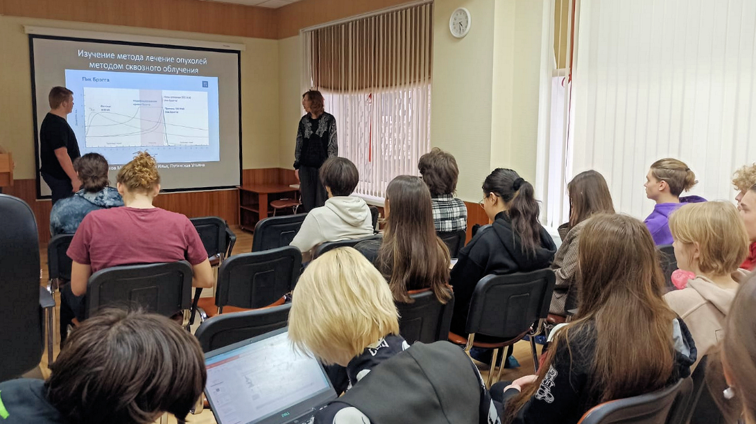 В лаборатории экспериментальной генетики Отделения молекулярной и радиационной биофизики вместе юные исследователи познакомились с основами работы на классическом модельном объекте Drosophila melanogaster (плодовая мушка дрозофила), а в лаборатории медицинской физики Отдела медицинской радиологии школьникам рассказали об истории протонной лучевой терапии и показали как работать с дозиметрами и проводить юстировочные работы, исследовать внутреннюю структуру объектов на основе данных, полученных с помощью рентгена. Ребята моделировали сеанс облучения и анализировали графическое распределение доз. При помощи специального программного обеспечения юные медицинские физики освоили основы планирования протонной терапии и составили индивидуальные планы лечения.