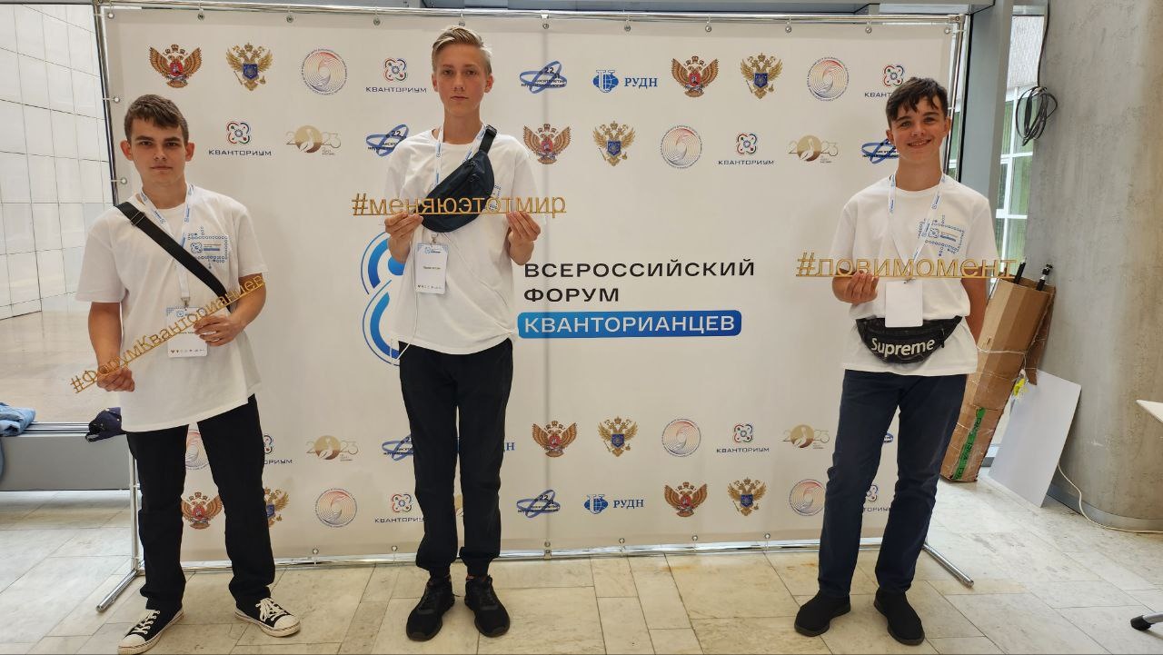 Форум собрал более 200 школьников из 32 регионов Российской Федерации, отобранных по итогам конкурса и показавших отличные результаты в области инженерного проектирования и исследовательской деятельности, а также 50 педагогов-наставников. Нашу команду представляют Алексей Смирнов, Вадим Кияшко, воспитанники IT-квантума и Богдан Берзин из цеха хайтек, а также их педагог Никита Иванов.