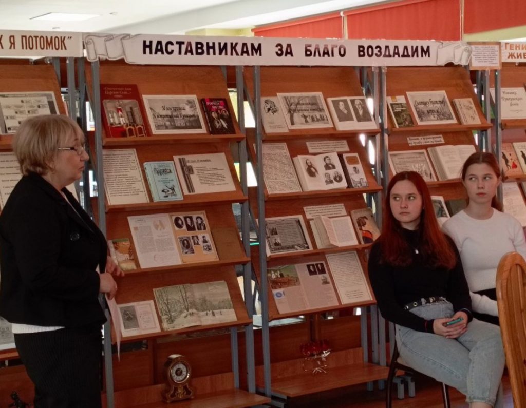 Говорили на уроке и о том, что гражданская позиция лицеистов сформировалась именно в годы обучения. Об этом и многом другом рассказывают книги, представленные на выставке «Наставникам за благо воздадим», которые сотрудники библиотеки рекомендовали для чтения юношам и девушкам.