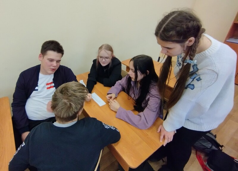 Ученики работали в группах, рассуждали, доказывая свою точку зрения. Более активным ученикам Олег Анатольевич вручил информационные буклеты «Будущему избирателю».
