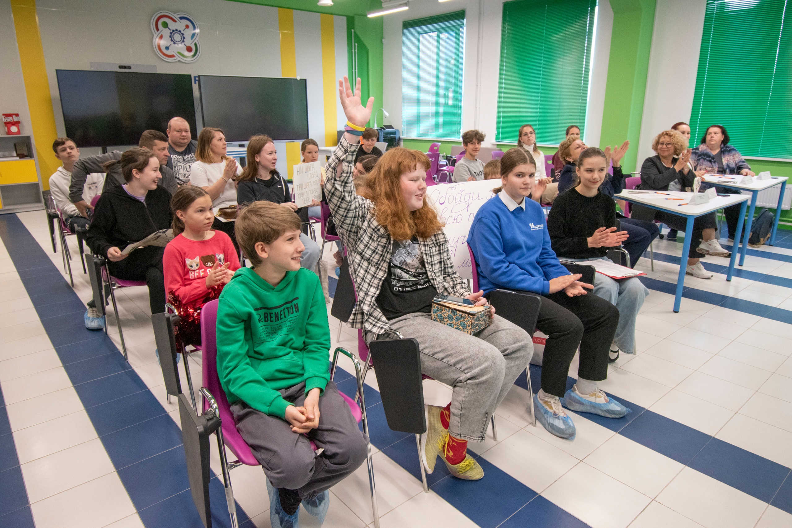 Большая группа поддержки Анастасии Петуховой, куда вошли родители и друзья, нарисовали плакаты и подготовили видеопрезентацию о своей героине. Сама Анастасия, рассказывая о собственных увлечениях и успехах, призналась, что ей интересно абсолютно всё: от занятий различными видами спорта и программированием в ДТ «Кванториум» до пилотирования квадрокоптерами в Центре информационных технологий и, кончено же, учёбы в кингисеппской гимназии, где она показывает отличные знания по всем учебным предметам.