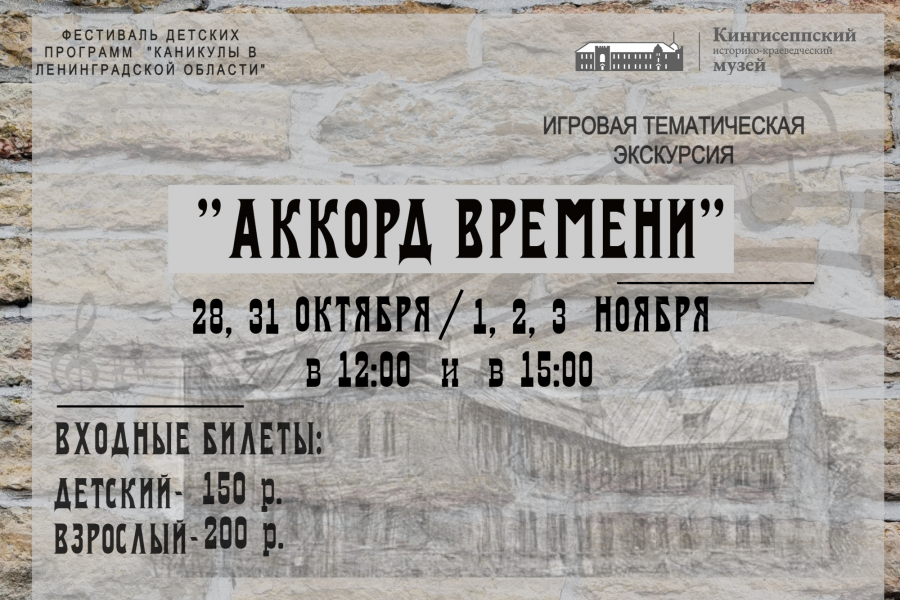 Кингисеппский историко-краеведческий музей приглашает в дни осенних школьных каникул на игровую тематическую экскурсию «АККОРД ВРЕМЕНИ».