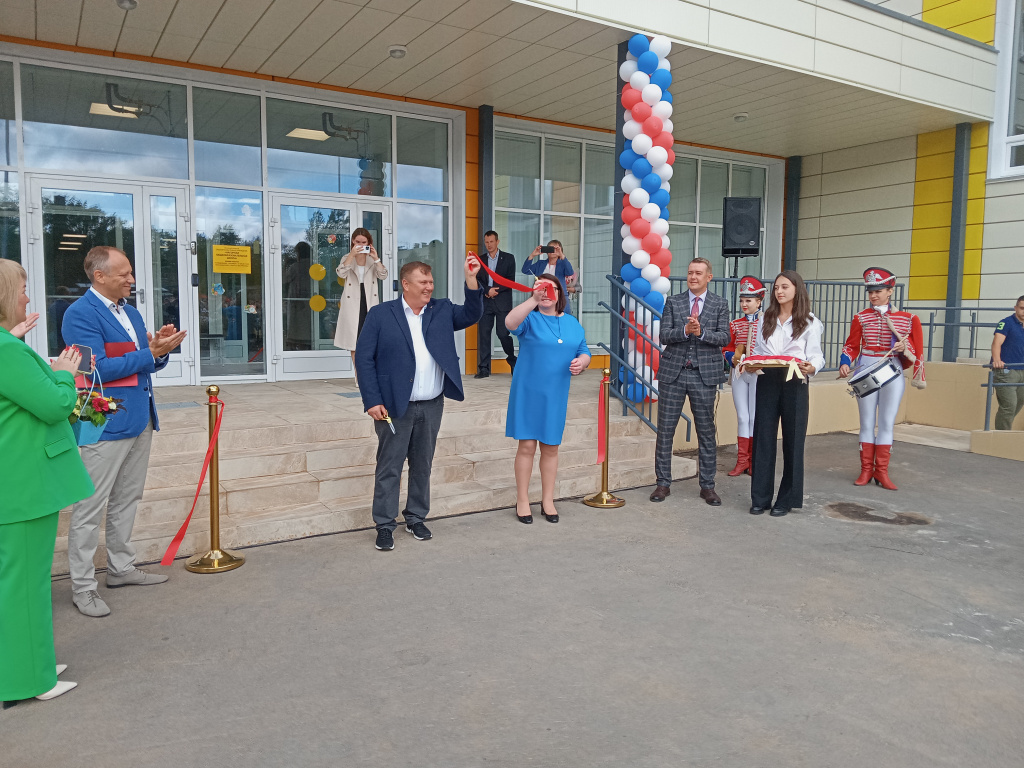В ходе церемонии открытия здания красную ленточку перерезали глава администрации Ломоносовского района Алексей Кондрашов и директор школы Наталья Доброва. По традиции первыми в новое здание вошли первоклассники.