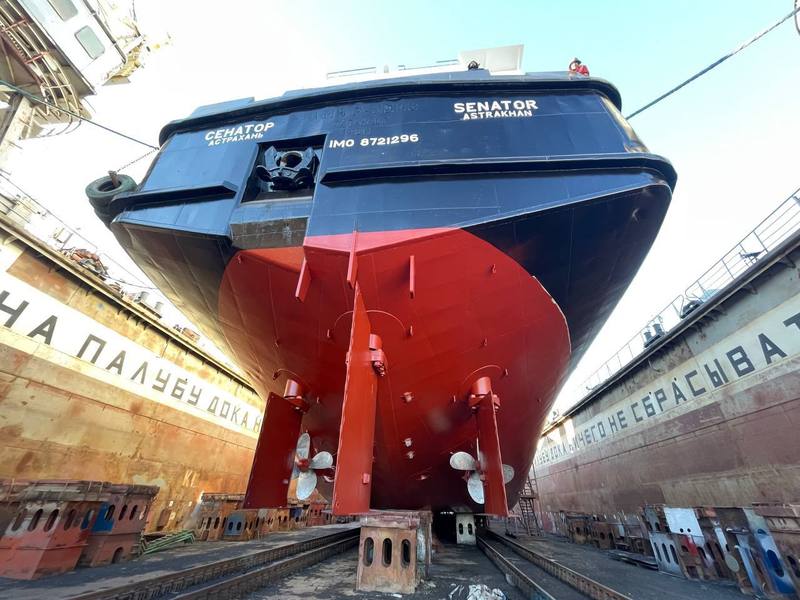 Фото из Telegram-канала ЮЦСССпециалисты судоремонтной службы Астраханского судостроительного производственного объединения (АСПО) Южного центра судостроения и судоремонта (ЮЦСС, входит в Объединенную судостроительную корпорацию, ОСК) завершили капитальный доковый ремонт универсального сухогрузного теплохода «Сенатор» проекта 92-040 тип «Амур». На судне заменили металлоконструкции в балластных отсеках, поменяли привальный брус по периметру корпуса судна. Провели ремонт и испытания донно-забортной арматуры в составе с кингстонными ящиками, якорного устройства судна, сообщается в Telegram-канале ЮЦСС.
