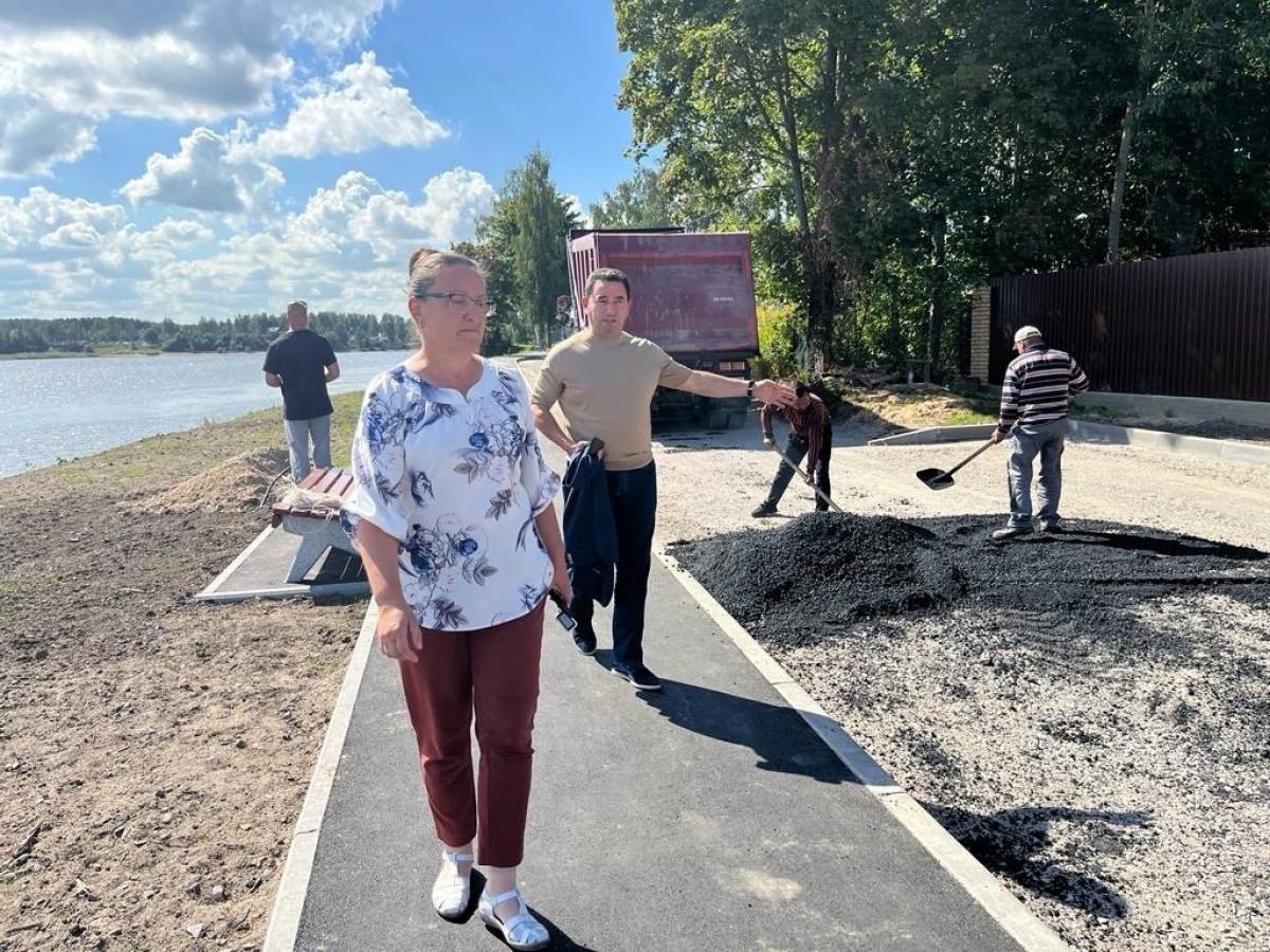 Вместе с главой МО «Дубровское городское поселение» Татьяной Куликовой депутат побывал на территории между улицей Зощенко и рекой Нева, где близится к завершению 2-й этап работ по благоустройству береговой линии в посёлке Пески. Благоустройство продолжается в едином стиле с работами 1 этапа, чтобы получилось единое пространство для досуга. Обустраиваются прогулочная пешеходная зона, футбольная и волейбольная площадки, установлены 3 парковые качели и сделано уличное освещение.