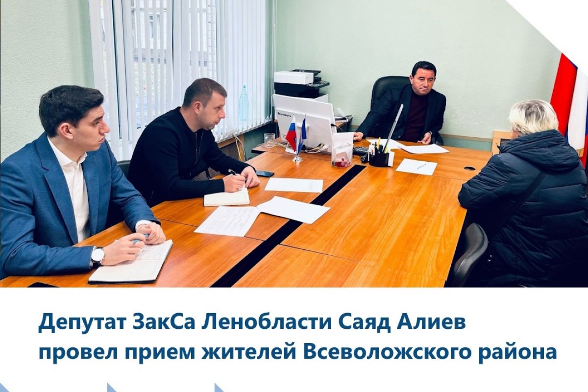 Депутат Законодательного Собрания Ленобласти фракции «Единая Россия» Саяд Алиев провёл личный приём граждан из разных уголков Всеволожского района: Куйвозовского поселения, города Колтуши, СНТ «Луговое», городского поселения Дубровка.