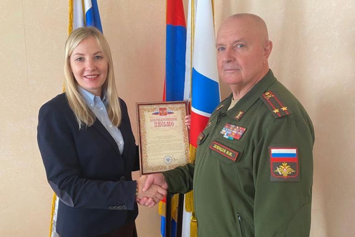 Руководитель Общественной приёмной Приозерского местного отделения Партии «Единая Россия» Александра Полянская получила благодарность от личного состава 344 полка и подполковника Виталия Клёстера за гражданскую позицию,