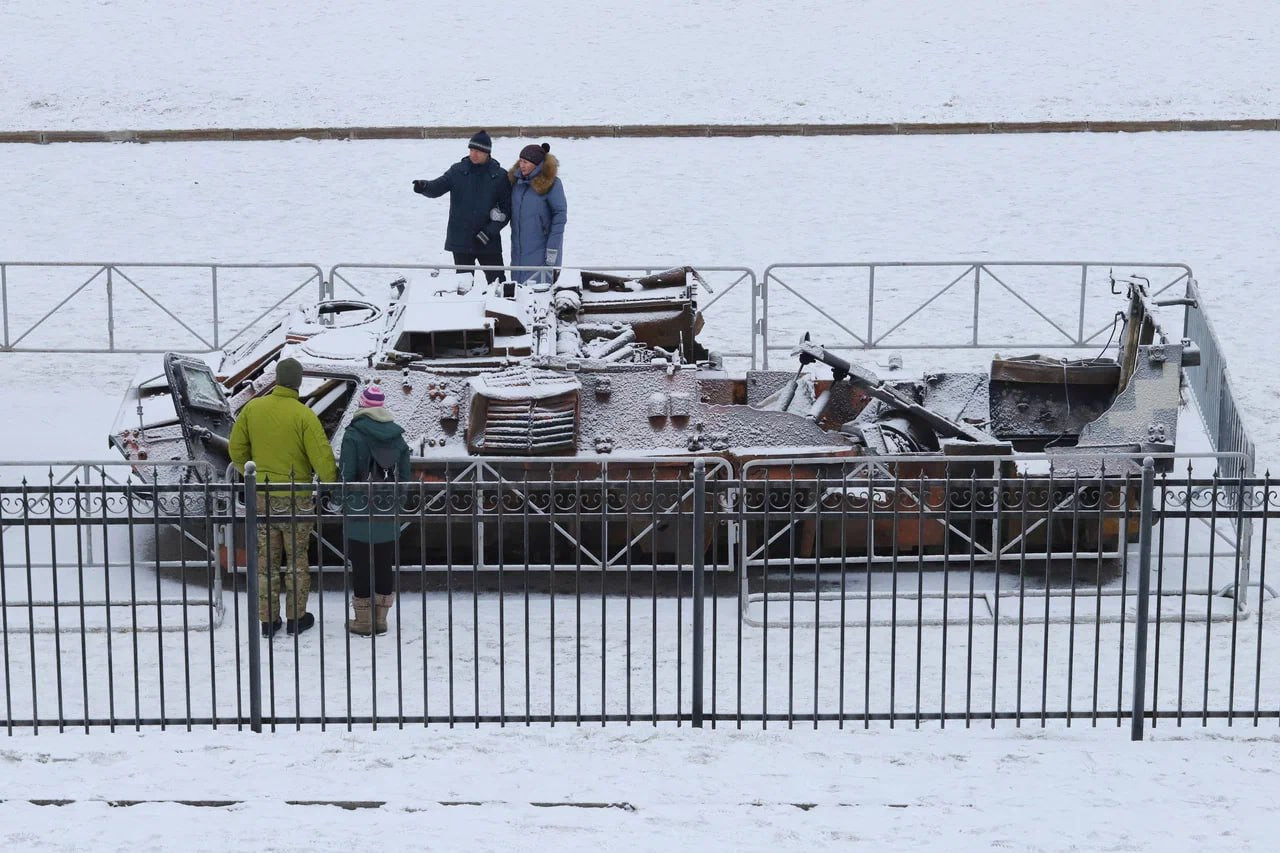 Поверженные "Буцефалы" и украинский танк уже привлекли внимание посетителей музея "Прорыв блокады Ленинграда". В конце января этот комплекс традиционно испытывает наплыв посетителей, связанный с годовщинами прорыва блокады и полного освобождения Ленинграда от блокады.