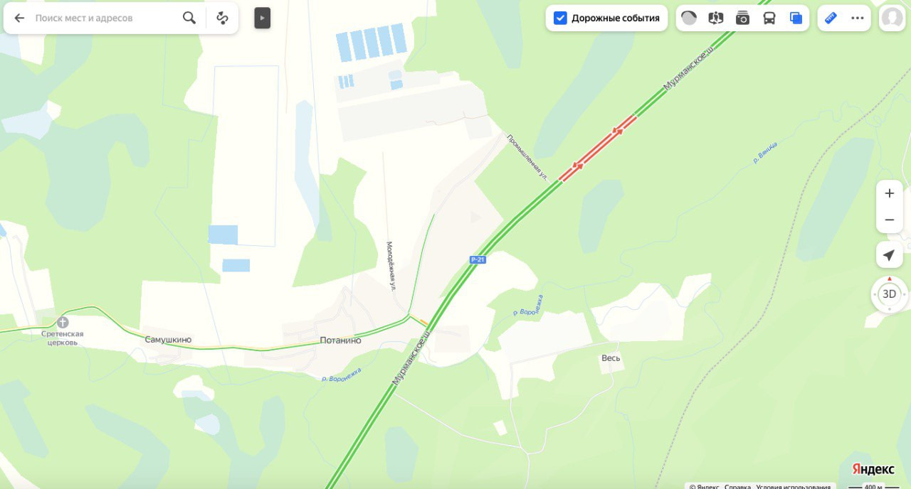 Судя по данным сервиса "Яндекс-пробки", в районе аварии на момент подготовки публикации наблюдается затор в обе стороны на протяжениии 600 метров.