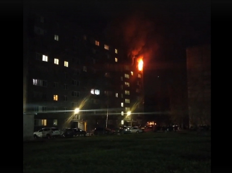 Квартира на 8 этаже загорелась в 11 вечера (ВИДЕО)