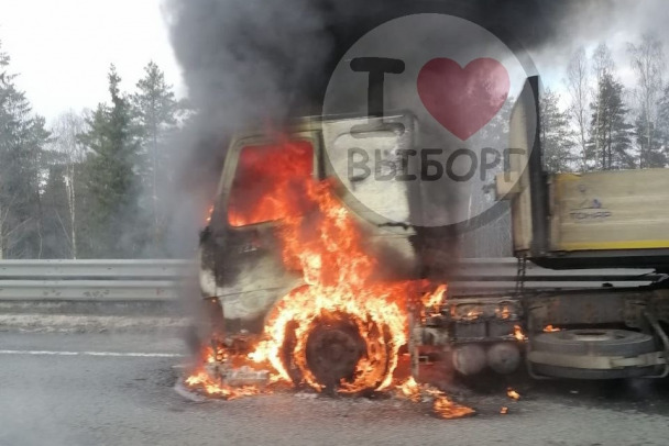 Фура вспыхнула на 56 км трассы "Скандинавия" днем 15 марта.