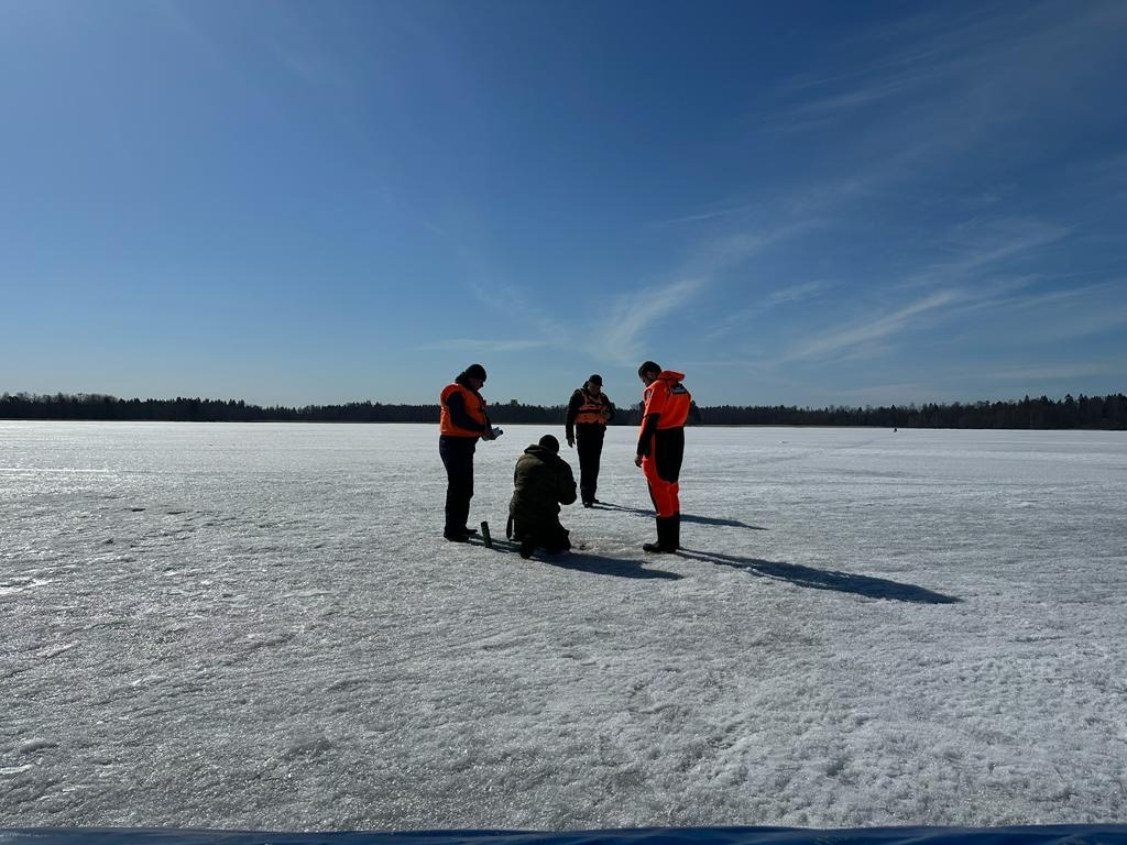 Спасатели поисково-спасательного отряда городов Приозерск и Лодейное Поле провели мониторинг ледовой обстановки озера Ву