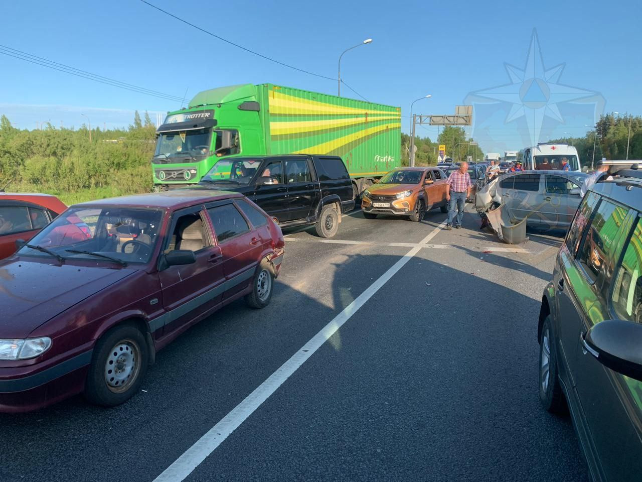 У Красного Бора столкнулись пять легковушек и фура, есть пострадавшие