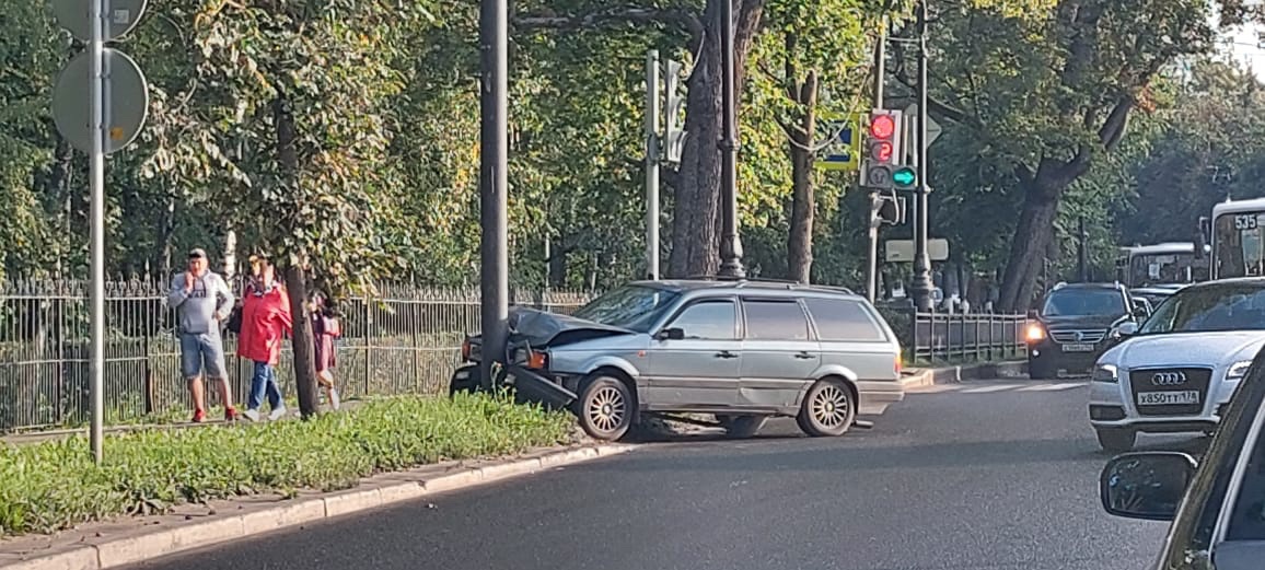 Автомобильная пробка собирается на проспекте 25 Октября в Гатчине. Машина, двигавшаяся в сторону Коннетабля, врезалась в опору освещения на перекрестке улицы Чкалова и проспекта 25 Октября.
