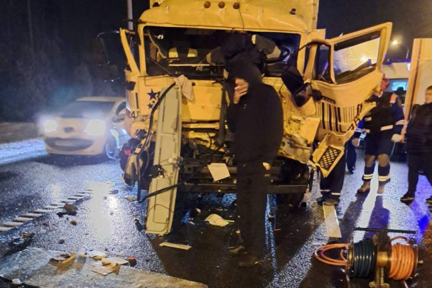 В ДТП под Тосно сплющило кабину фуры с водителем. Его доставали спасатели (фото)