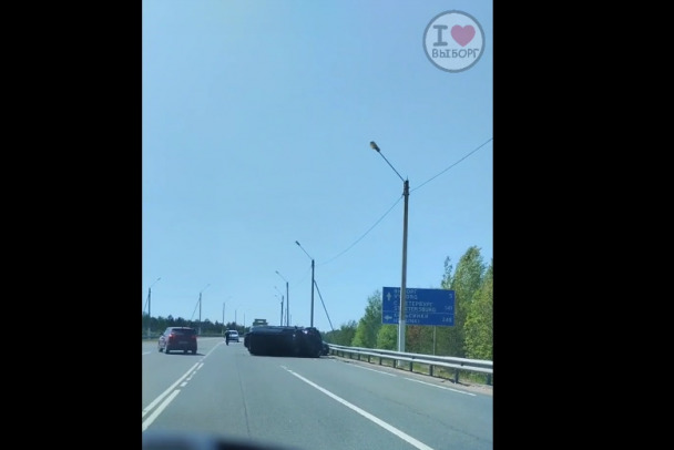 Видео: Внедорожник опрокинулся на бок на «Скандинавии» у Выборга