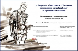 15 Февраля – «День памяти о Россиянах, исполнявших служебный долг за пределами Отечества»