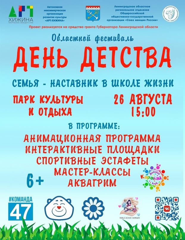 26 августа стартует пятый по счету фестиваль «День детства»! «День детства» – проект, направленный на укрепление института семьи, возрождение семейных ценностей, улучшение демографической ситуации в Ленинградской области.