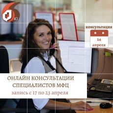 24 апреля в МФЦ Ленобласти пройдет новый этап марафона видеоконсультаций. В режиме онлайн жители региона смогут получить ответы на интересующие вопросы в сфере государственных и муниципальных услуг.