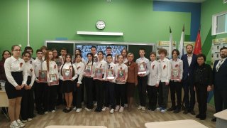Часть урока была посвящена акции «Бессмертный полк». Ребята принесли фотографии своих родственников, каждый смог поделиться историей своей семьи, рассказать о героическом подвиге прадеда. В свою очередь Вероника Ивановна рассказала историю своего дедушки, не вернувшегося с Курской битвы.