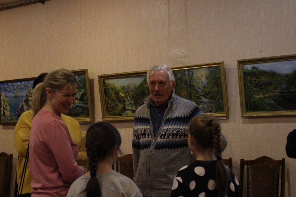 – У людей, живущих в глубинке, единственная возможность развиваться эстетически – это слушать музыку в записи, смотреть иллюстрации. Мы стараемся проводить как можно больше «живых» выставок, чтобы жители нашего поселения видели хорошие картины, чтобы у них развивался художественный вкус, чтобы они знали своих творческих земляков. Для многих сегодняшняя встреча – это возможность узнать, что Сергей Викторович пишет картины, представить всё многообразие его творчества, познакомиться с ним лично. Как говорил Евгений Евтушенко: «Людей неинтересных в мире нет», – обратилась к собравшимся заведующая библиотекой Светлана Спиридонова.