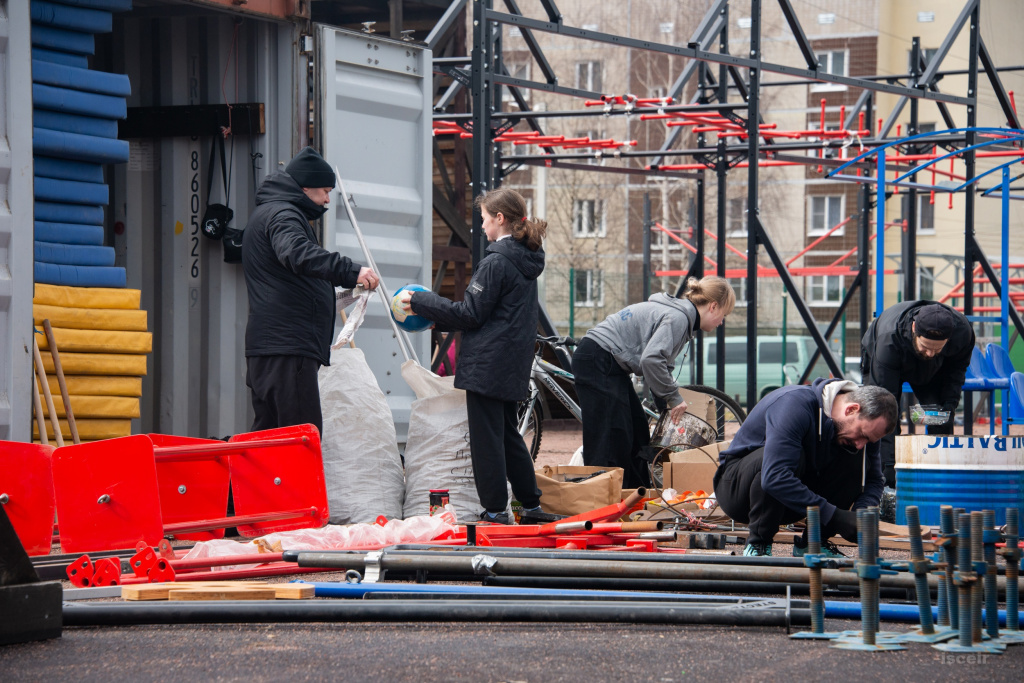 Участники субботника очистили от мусора и прошлогодней листвы хоккейную коробку, стадион и базу «Высота».