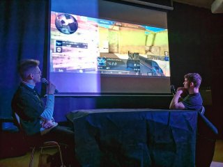 Поясняем. Это не просто компьютерные стрелялки, а самый настоящий Киберспорт, который очень активно развивается в России. Соревнования проводятся в три этапа. Команды геймеров интерактивно подключаются к игре с помощью мобильного приложения, при этом находясь в разных помещениях. Остальные участники следят за турниром на большом проекторе в актовом зале, а два ведущих активно комментируют каждый шаг игроков.