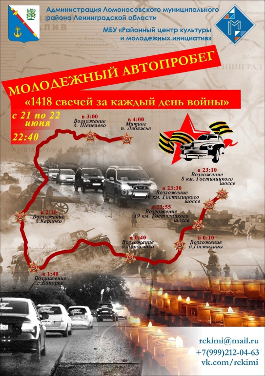 Ломоносовцев приглашают присоединиться к молодёжному автопробегу «1418 свечей за каждый день войны»
