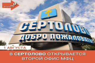 1 августа в Сертолово состоится открытие нового Многофункционального центра, который станет уже вторым офисом «Мои документы» в городе.