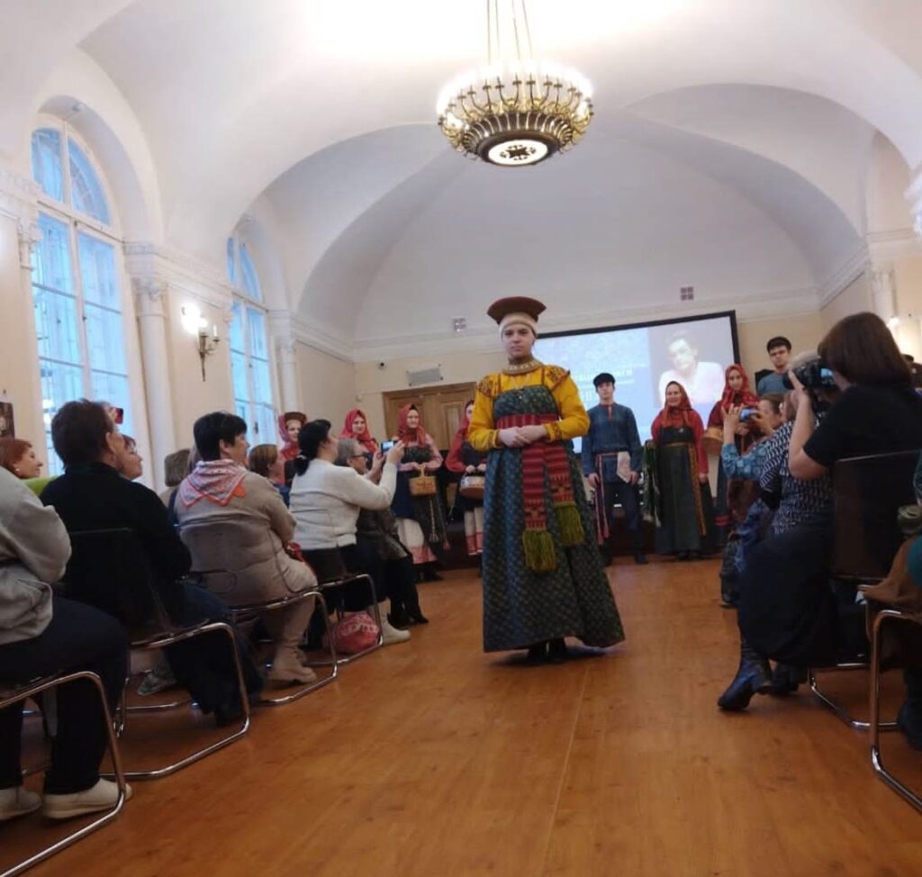 Самым завораживающим стало представление коллекций традиционных костюмов Тотемского уезда Вологодской губернии и мастерской Катерины Кондратьевой, демонстрация платков из семейной мастерской Полежаевых. Цвета, ткани, фактура, сочетание – всё гармонично и красиво глазу! Возникает понимание, что это не прошлое, это всё может быть и сегодня в наших домах.