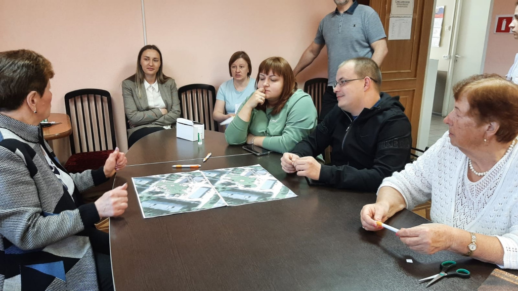 На проектировочной сессии жители поселения отметили, что хотели бы видеть на выбранном месте современную зону отдыха. Участники разделились на две команды и создали свои мини-проекты. Местные жители разместили на плане такие объекты, как сцена, качели, скамейки и фонари. Кроме того, были обозначены места расположения зеленых насаждений и пешеходных дорожек.