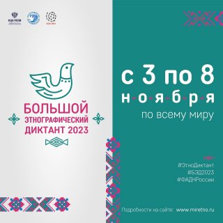 С 3 по 8 ноября 2023 года пройдет ежегодная Всероссийская просветительская акция «Большой этнографический диктант», которая знакомит с культурой народов, проживающих в России, а также позволяет оценить общий уровень этнокультурной грамотности.